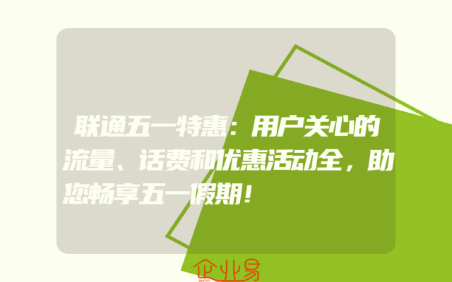 - 联通五一特惠:用户关心的流量、话费和优惠活动全,助您畅享五一假期!