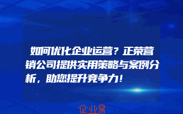 - 如何优化企业运营?正荣营销公司提供实用策略与案例分析,助您提升竞争力!