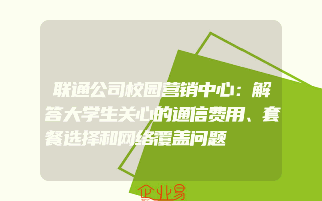 - 联通公司校园营销中心:解答大学生关心的通信费用、套餐选择和网络覆盖问题