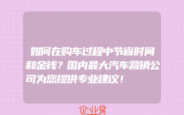 - 如何在购车过程中节省时间和金钱?国内最大汽车营销公司为您提供专业建议!
