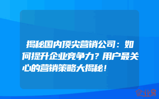 - 揭秘国内顶尖营销公司:如何提升企业竞争力?用户最关心的营销策略大揭秘!