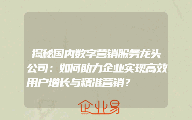 - 揭秘国内数字营销服务龙头公司:如何助力企业实现高效用户增长与精准营销?随着互联网的快速发展,数字营销已经成为企业获取用户和提升品牌影响力的重要手段。在这个领域,有一家国内的数字营销服务龙头企业,它凭借领先的技术和丰富的经验,为企业提供高效用