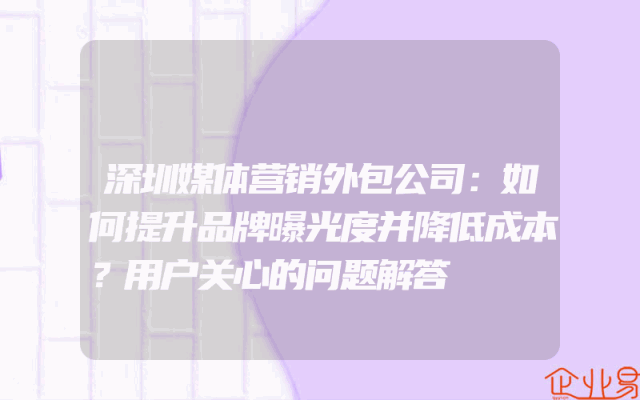 - 深圳媒体营销外包公司:如何提升品牌曝光度并降低成本?用户关心的问题解答