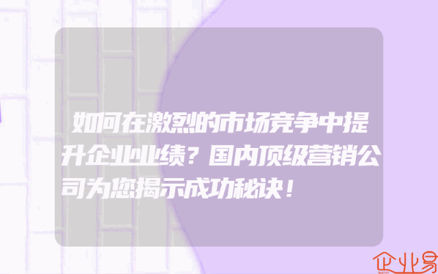 - 如何在激烈的市场竞争中提升企业业绩?国内顶级营销公司为您揭示成功秘诀!