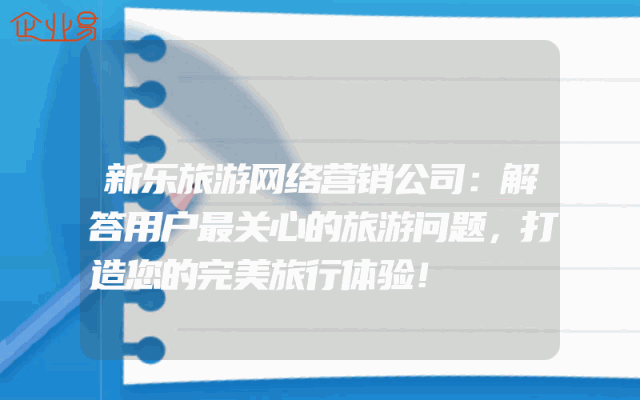 - 新乐旅游网络营销公司:解答用户最关心的旅游问题,打造您的完美旅行体验!