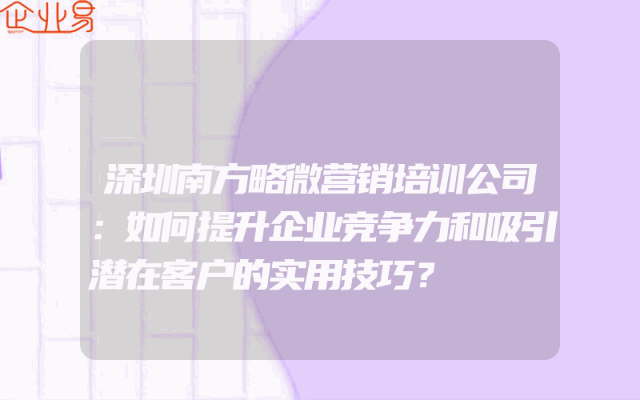 - 深圳南方略微营销培训公司:如何提升企业竞争力和吸引潜在客户的实用技巧?