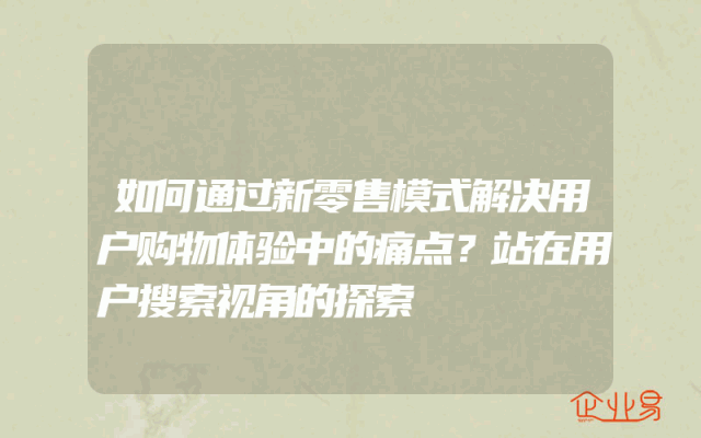 - 如何通过新零售模式解决用户购物体验中的痛点?站在用户搜索视角的探索