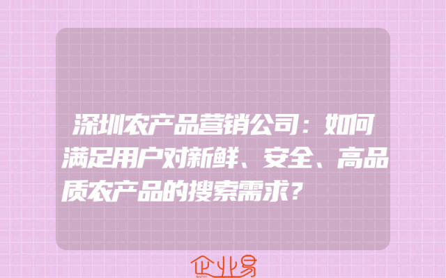 - 深圳农产品营销公司:如何满足用户对新鲜、安全、高品质农产品的搜索需求?