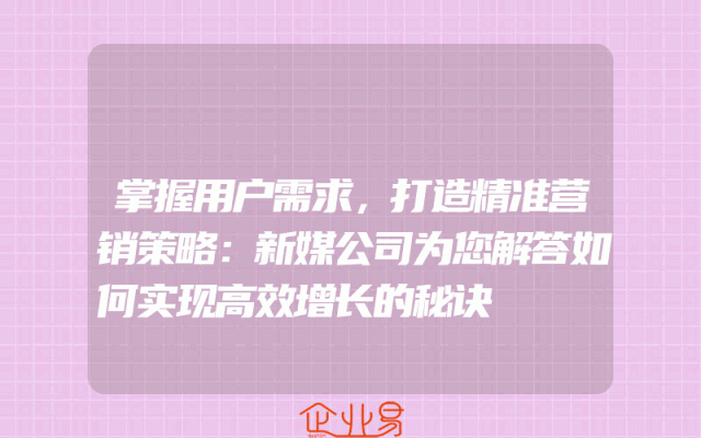 - 掌握用户需求,打造精准营销策略:新媒公司为您解答如何实现高效增长的秘诀