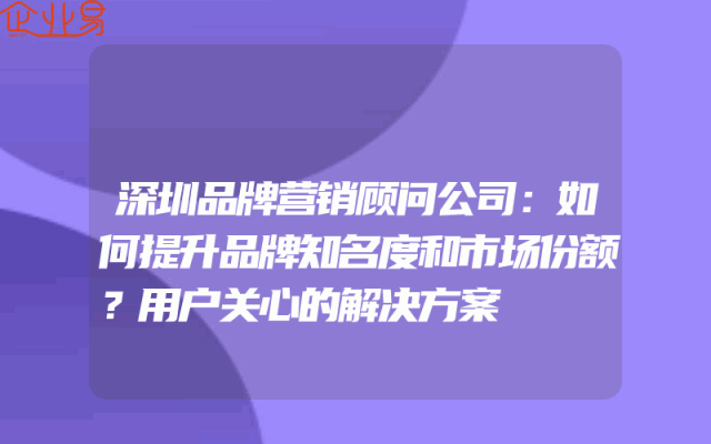 - 深圳品牌营销顾问公司:如何提升品牌知名度和市场份额?用户关心的解决方案