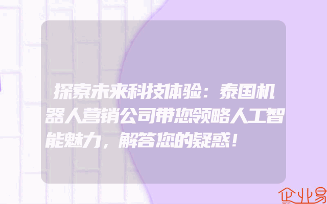 - 探索未来科技体验:泰国机器人营销公司带您领略人工智能魅力,解答您的疑惑!在当今这个科技高速发展的时代,人工智能已经成为了我们生活中不可或缺的一部分。它不仅在各个领域发挥着重要作用,还在改变着我们的生活方式。为了让大家更好地了解人工智能的魅力