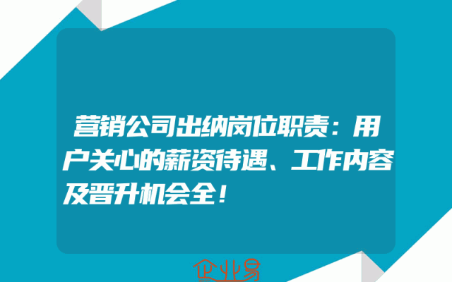 - 营销公司出纳岗位职责:用户关心的薪资待遇、工作内容及晋升机会全!