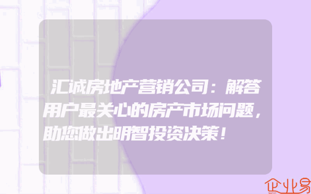 - 汇诚房地产营销公司:解答用户最关心的房产市场问题,助您做出明智投资决策!