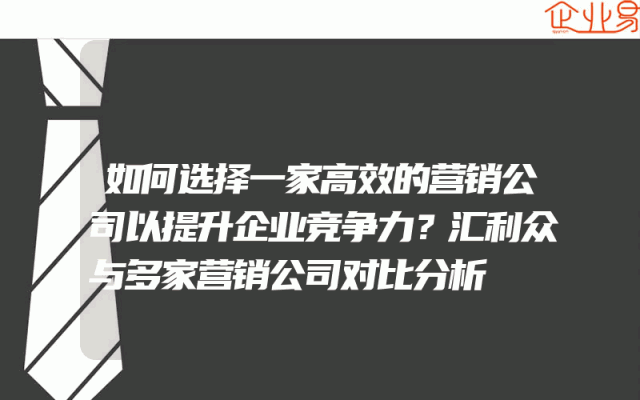 - 如何选择一家高效的营销公司以提升企业竞争力?汇利众与多家营销公司对比分析