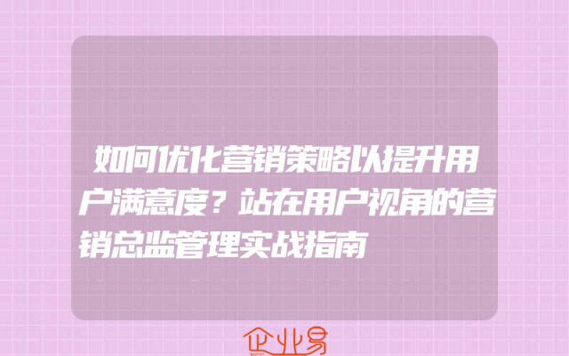 - 如何优化营销策略以提升用户满意度?站在用户视角的营销总监管理实战指南