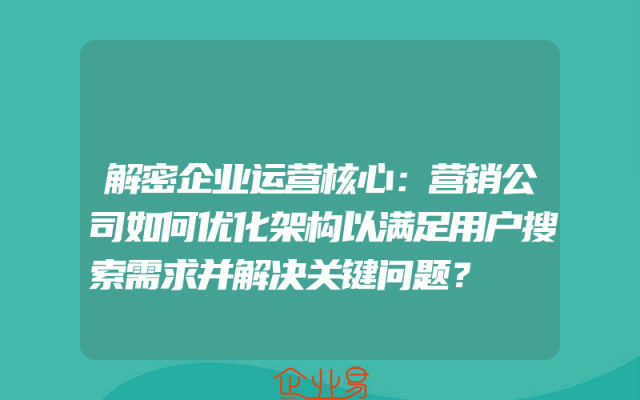 - 解密企业运营核心:营销公司如何优化架构以满足用户搜索需求并解决关键问题?