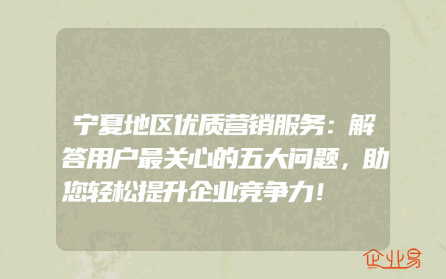 - 宁夏地区优质营销服务:解答用户最关心的五大问题,助您轻松提升企业竞争力!