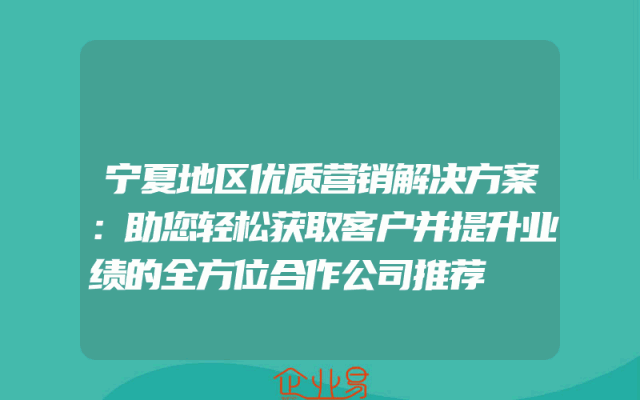 - 宁夏地区优质营销解决方案:助您轻松获取客户并提升业绩的全方位合作公司推荐