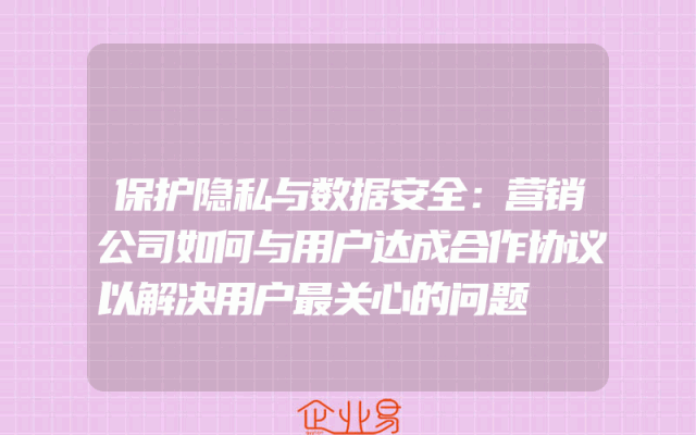 - 保护隐私与数据安全:营销公司如何与用户达成合作协议以解决用户最关心的问题