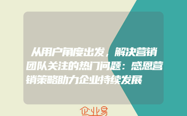 - 从用户角度出发,解决营销团队关注的热门问题:感恩营销策略助力企业持续发展