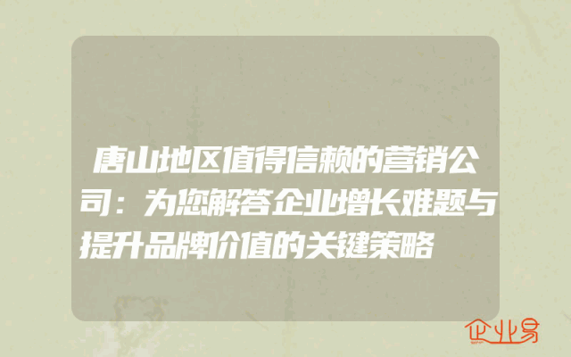 - 唐山地区值得信赖的营销公司:为您解答企业增长难题与提升品牌价值的关键策略