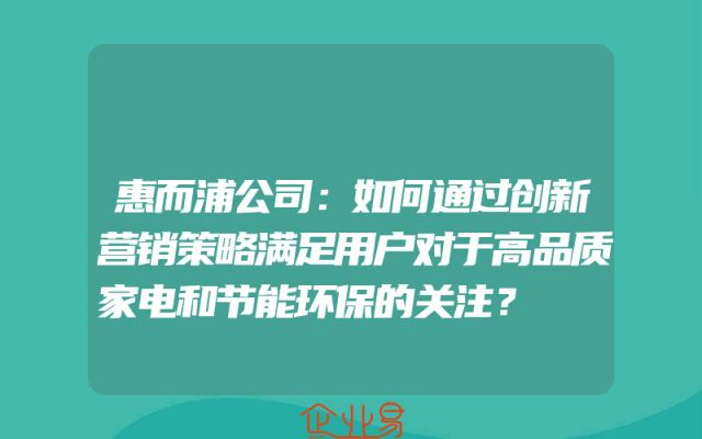 - 惠而浦公司:如何通过创新营销策略满足用户对于高品质家电和节能环保的关注?