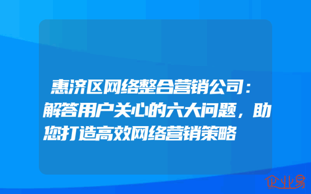 - 惠济区网络整合营销公司:解答用户关心的六大问题,助您打造高效网络营销策略