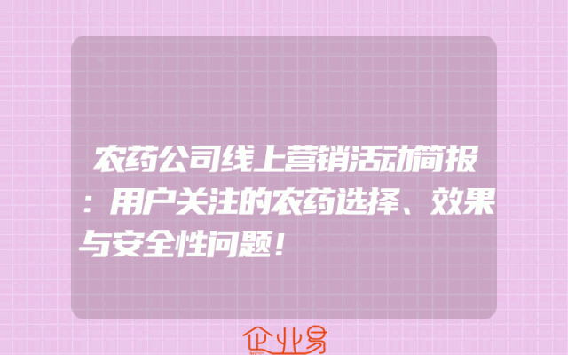 - 农药公司线上营销活动简报:用户关注的农药选择、效果与安全性问题!