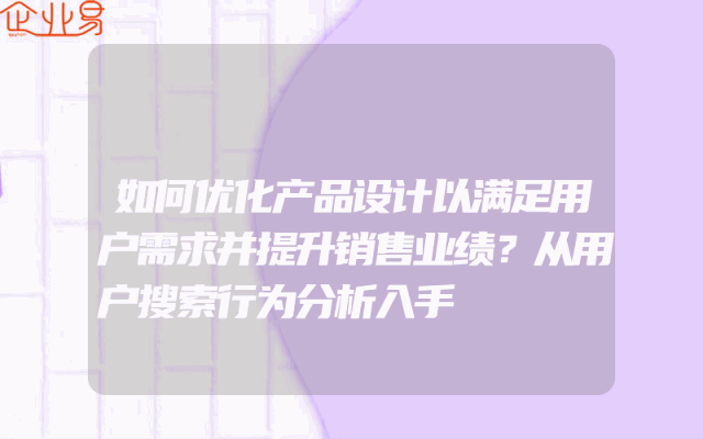 - 如何优化产品设计以满足用户需求并提升销售业绩?从用户搜索行为分析入手