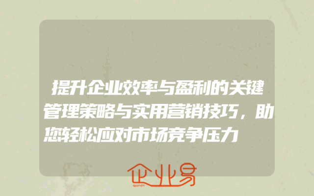 - 提升企业效率与盈利的关键管理策略与实用营销技巧,助您轻松应对市场竞争压力
