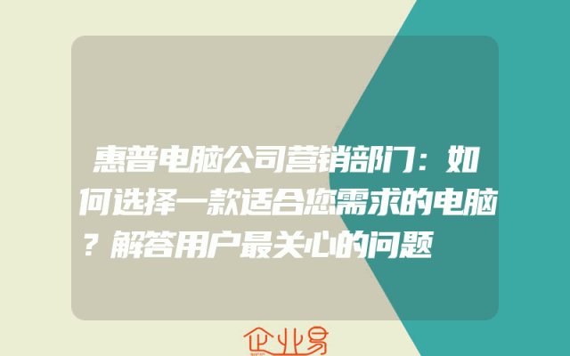- 惠普电脑公司营销部门:如何选择一款适合您需求的电脑?解答用户最关心的问题