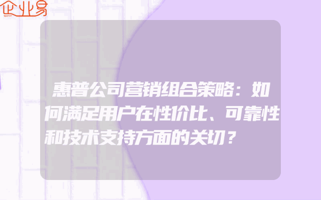 - 惠普公司营销组合策略:如何满足用户在性价比、可靠性和技术支持方面的关切?