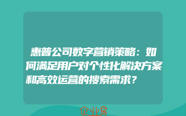 - 惠普公司数字营销策略:如何满足用户对个性化解决方案和高效运营的搜索需求?