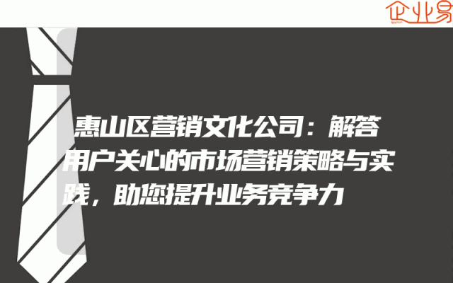 - 惠山区营销文化公司:解答用户关心的市场营销策略与实践,助您提升业务竞争力