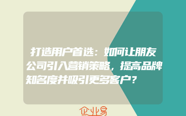 - 打造用户首选:如何让朋友公司引入营销策略,提高品牌知名度并吸引更多客户?