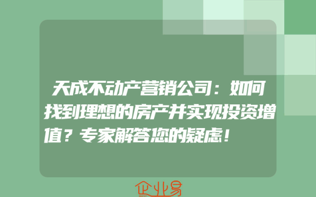 - 天成不动产营销公司:如何找到理想的房产并实现投资增值?专家解答您的疑虑!