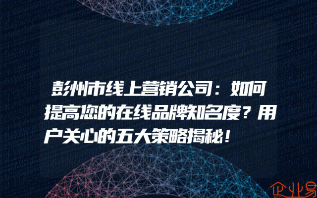 - 彭州市线上营销公司:如何提高您的在线品牌知名度?用户关心的五大策略揭秘!
