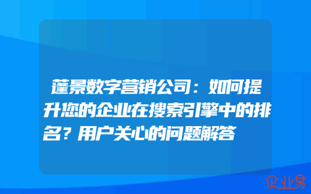 - 蓬景数字营销公司:如何提升您的企业在搜索引擎中的排名?用户关心的问题解答