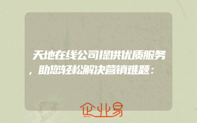 - 天地在线公司提供优质服务,助您轻松解决营销难题: