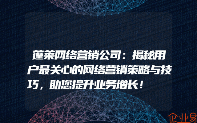 - 蓬莱网络营销公司:揭秘用户最关心的网络营销策略与技巧,助您提升业务增长!