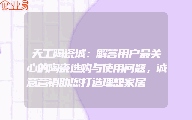 - 天工陶瓷城:解答用户最关心的陶瓷选购与使用问题,诚意营销助您打造理想家居