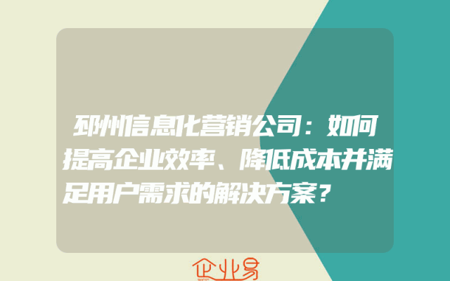 - 邳州信息化营销公司:如何提高企业效率、降低成本并满足用户需求的解决方案?