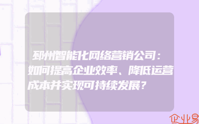 - 邳州智能化网络营销公司:如何提高企业效率、降低运营成本并实现可持续发展?