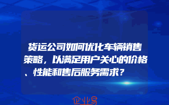 - 货运公司如何优化车辆销售策略,以满足用户关心的价格、性能和售后服务需求?