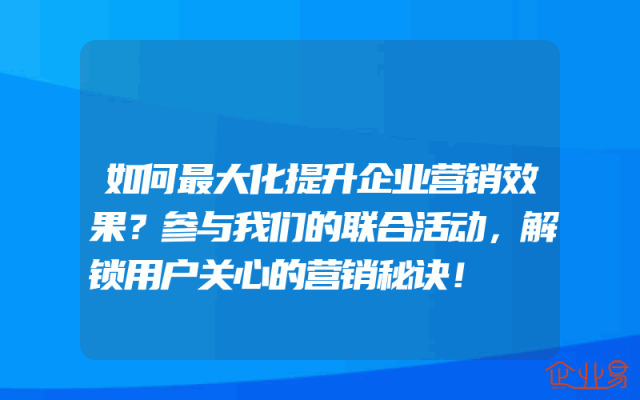 - 如何最大化提升企业营销效果?参与我们的联合活动,解锁用户关心的营销秘诀!