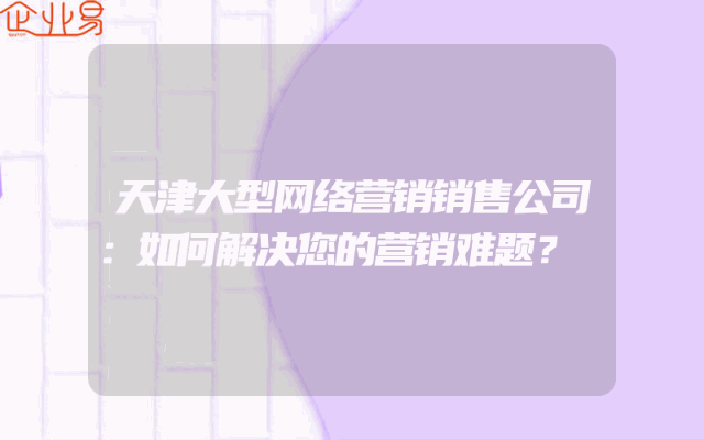 - 天津大型网络营销销售公司:如何解决您的营销难题?