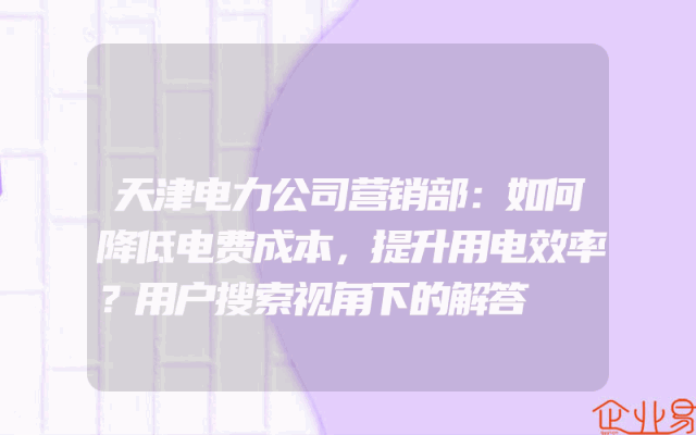 - 天津电力公司营销部:如何降低电费成本,提升用电效率?用户搜索视角下的解答