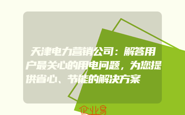 - 天津电力营销公司:解答用户最关心的用电问题,为您提供省心、节能的解决方案