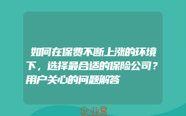 - 如何在保费不断上涨的环境下,选择最合适的保险公司?用户关心的问题解答