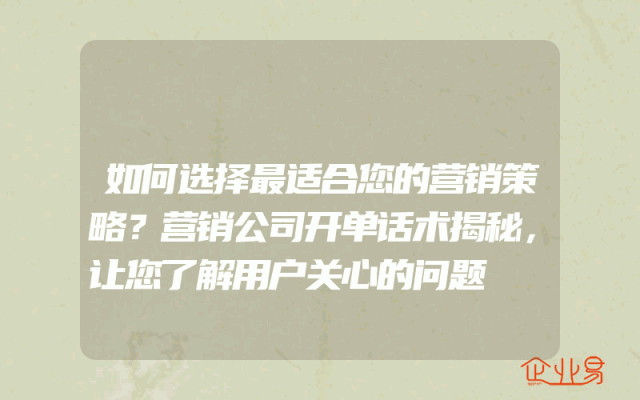 - 如何选择最适合您的营销策略?营销公司开单话术揭秘,让您了解用户关心的问题